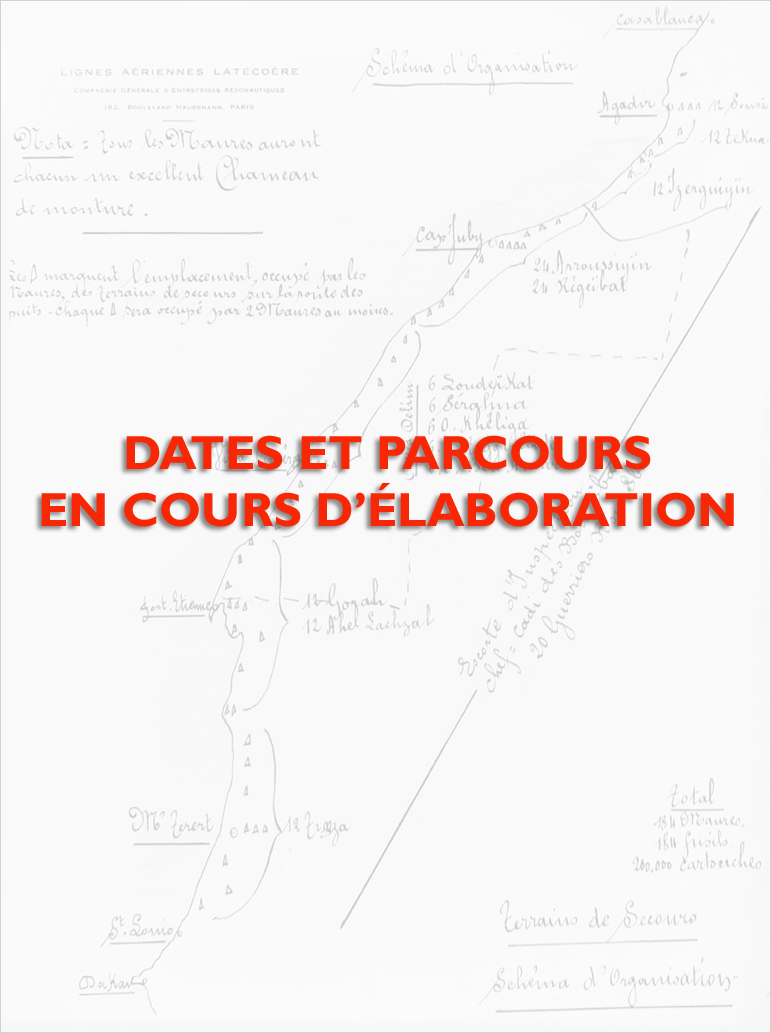 Il fera escale à Tarfaya / Cap Juby, étape mythique, et se terminera à Saint-Louis du Sénégal.